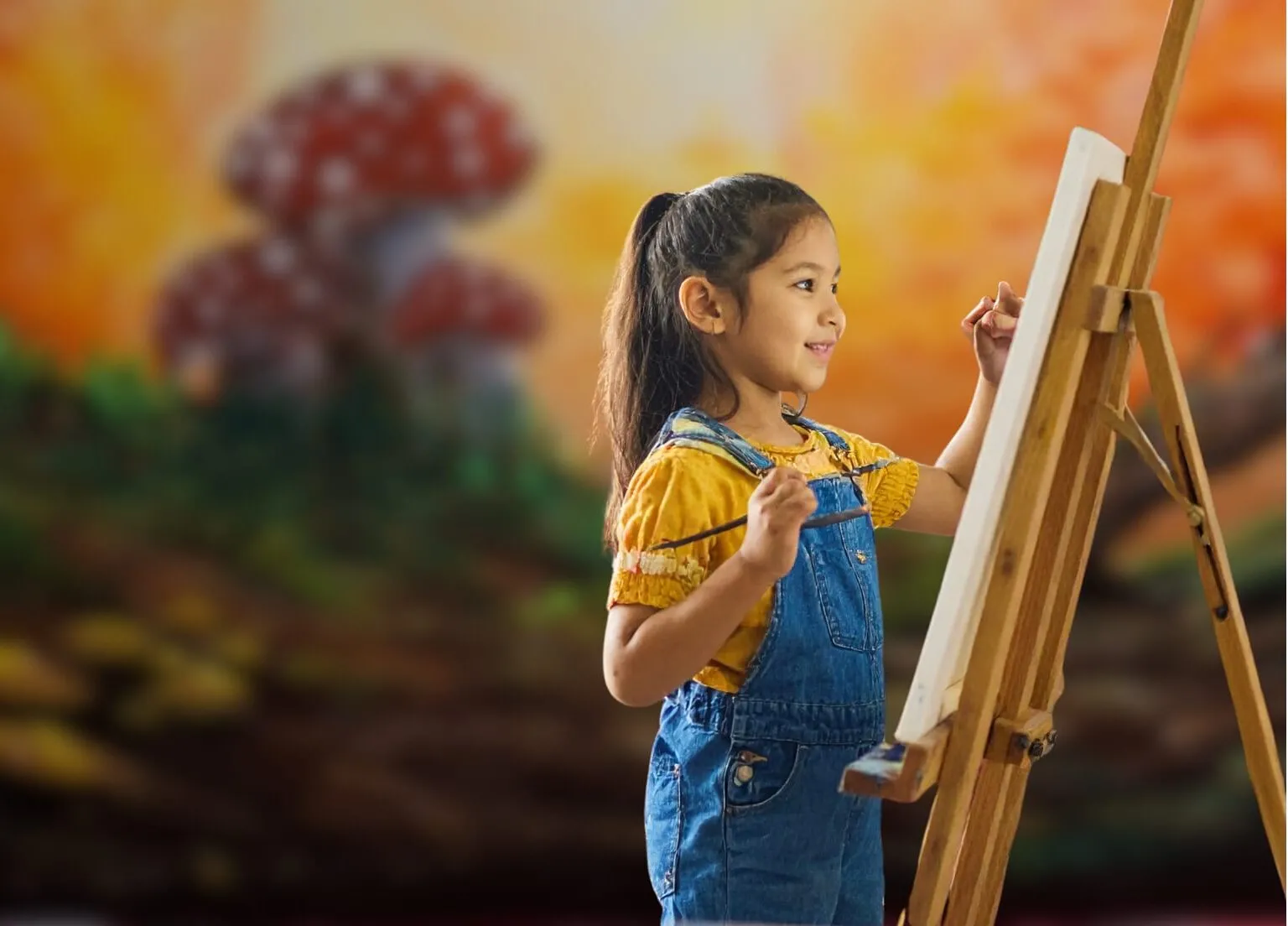 Kinderen leren eenvoudige schildertechnieken met penseel, sponsjes en andere materialen. Ze oefenen met vormen, kleuren mengen en hoe je dingen op de juiste plek zet in je schilderij: wat komt vooraan, wat komt achteraan? Ook komen begrippen als compositie, achtergrond en voorgrond op een speelse manier aan bod.